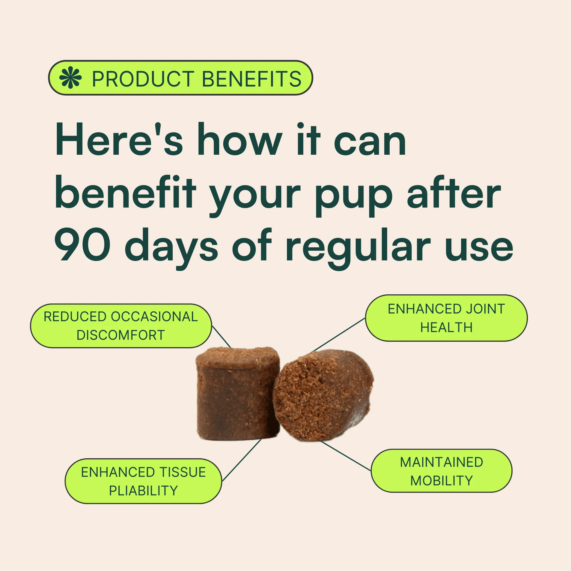 The Truth:Our joint supplements are an important part of a holistic approach to your dog’s well-being, but they're not a magic fix! Regular exercise and a balanced diet are key to maintaining joint health and overall vitality. Think of our supplements as the boost your dog’s joints need to stay happy and active.